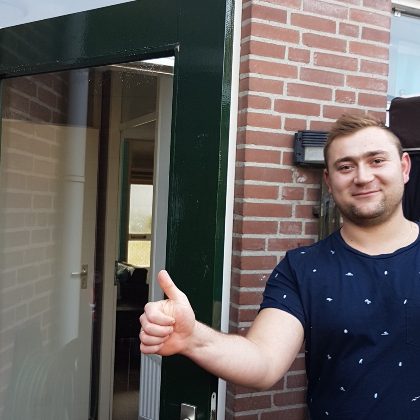 De achterdeur is door tocht te hard dichtgegaan, waardoor het enkel glas is gebroken. Onze glaszetter heeft diezelfde dag nog een nieuwe ruit op maat gesneden en geplaatst.